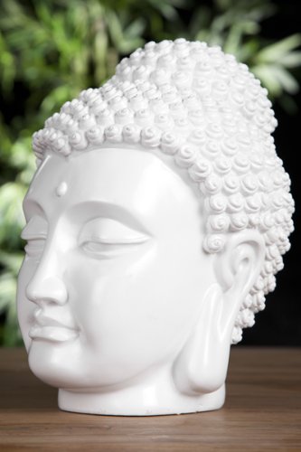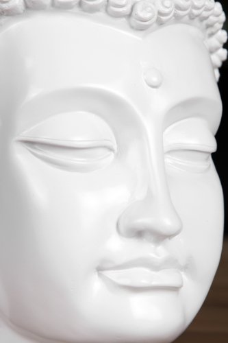 Scultura decorativa testa di Buddha, colore bianco lucido