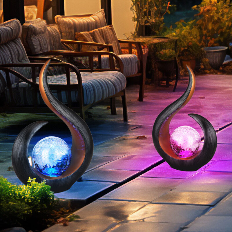 Descrizione Questo potrebbe attirare l'attenzione sulla tua terrazza/balcone. Splendidamente incastonata, la sfera di vetro straordinariamente bella (Ø10 cm) in ottica di vetro craquelé emette alternativamente luce colorata (rosso, verde, blu). Questa lampada solare alta quasi 34 cm è garantita per creare la giusta atmosfera nelle miti serate estive. L'illuminante LED RGB di alta qualità è installato in modo permanente nella lampada. La fornitura include due luci! Particolare lampada • Tipo di lampada: lampada solare • Materiale: plastica, vetro • Colore: oro nero • Grado di protezione: IP44 • Pacco batteria • Interruttore • Cambio di colore • Sensore crepuscolare • Autonomia circa 6-8 ore • Lunghezza x larghezza x altezza in cm: 22,5x10x33,5 • Attacco: 1x LED RGB • Lampadina inclusa: sì