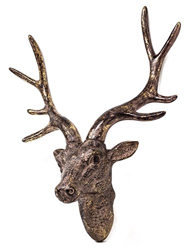 YGL - Scultura da parete a forma di testa di cervo, 42 cm, Resina, bronzo, 15 x 36 x 42cm