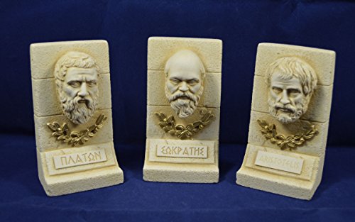 Set di sculture di antichi filosofi greci: Socrate, Platone e Aristotele