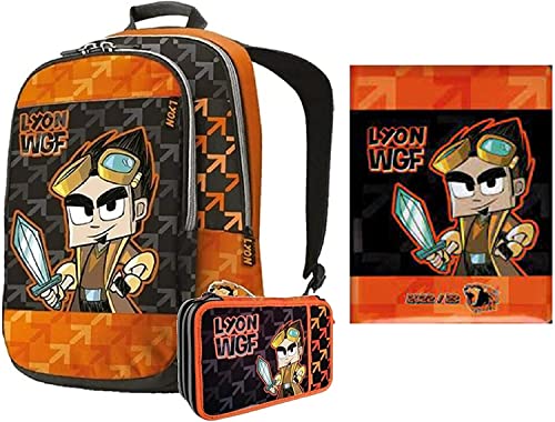 NEKA SET SCUOLA LYON GAMER -ZAINO DOPPIO SCOMPARTO + ASTUCCIO 3 ZIP 4SCHOOL + DIARIO 12 MESI ! 2022/2023 panini kit scuola completo lyon gamer