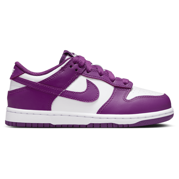 Start your little one's sneaker collection off with an icon. Designed for basketball but adopted by skaters, the Nike Dunk Low helped define sneakerhead culture. With plush ankle padding and durable rubber traction, this '80s icon is an easy win for playtime and beyond. Made to Last: Real and synthetic leather is durable and brings a classic feel. Product details: Classic laces. Cupsole construction Nike Dunk: Born from a series of mash-ups, hacks and tight deadlines, the Nike Dunk landed on college basketball courts during the '85-'86 season. While the original 'College Colours' designs helped fans stay true to their school, the Dunk didn't prove to be popular. But it was this humble sneaker's lack of popularity—and flat, grippy soles—that helped it jump the rails to captivate skateboarders. Decades later, this everyday favourite continues to be snatched up in countless colourways, proving its influence is undeniable.