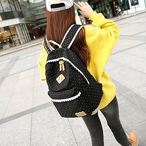 Moda scuola ragazza zaino, donne leggeri zaino tela, Adolescente pacchetto corsa Satchel, zaino laptop, Daypacks all'aperto per il tempo libero con elegante pizzo(nero)