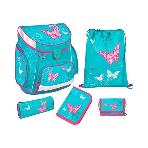 Set Scuola turchese con farfalle "Campus", 5 pezzi