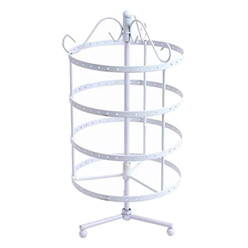 SDENSHI Scaffale Porta Gioielli in Metallo a 4 Livelli con Orecchini Rotanti - Bianca