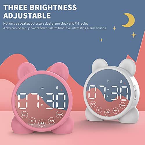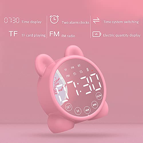SDFLKAE Dual Alarm Clock Stereo LED Specchio Schermo Altoparlante Bluetooth Portatile Cat Ear USB Ricaricabile Bambini Sveglia Radio