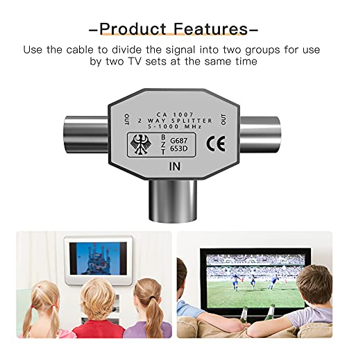 Facile da collegare: contiene due connettori maschio e 1 connettore femmina, lo splitter per cavi antenna a forma di T è facile e veloce da montare e utilizzare. Solo per uso interno.