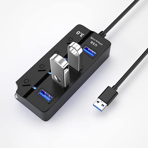 Hub USB 3.0 Sdoppiatore USB Multi USB Porta Con Interruttore Separato e Spie LED, 4 Porta USB 3.0 Hub Alimentato, per Veloce Trasferimento Dei Dati & Ricarica