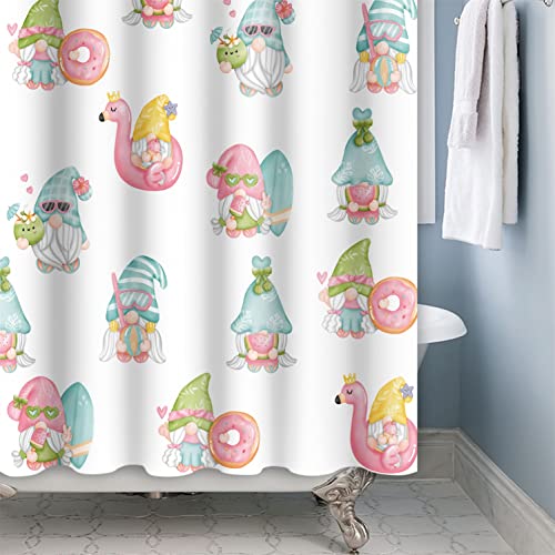 SDOTPMT 180x243cm Carina cartone animato Nano Tenda da doccia Buffo Gnomo con Cappello Anello da nuoto Tenda da bagno Estate Tema Bianco Tenda da doccia Poliestere per Bambino Bagno con ganci