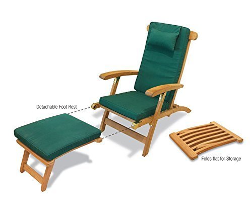 Sdraio da esterni, in teak con cuscino verde, completamente assemblato