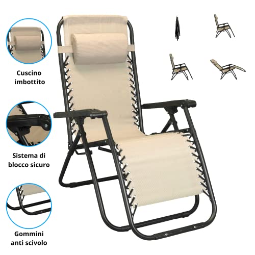 Sdraio pieghevole da giardino in acciaio e textilene automatica zero gravity (Beige)