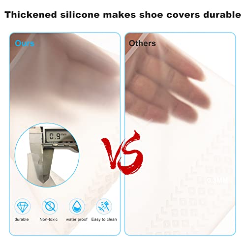 Materiale in silicone ispessito: i copriscarpe antipioggia sono realizzati in silicone spesso di alta qualità, il silicone ispessito rende le coperture per scarpe durevoli, il materiale è atossico, impermeabile, facile da pulire;