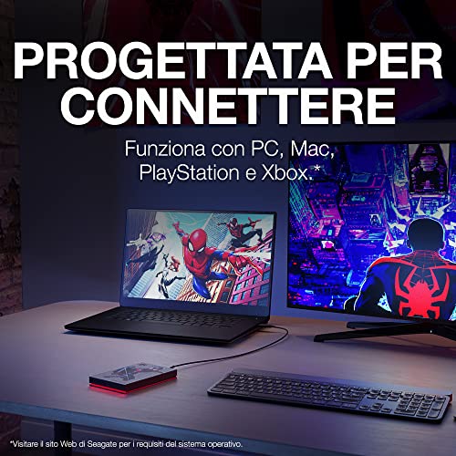 Seagate Firecuda 2TB disco rigido esterno portatile, compatibile con PS4, PS5, Xbox One/Series, PC, Marvel Edition Miles Morales, USB 3.2, 3 anni di Rescue Services (STKL2000419)