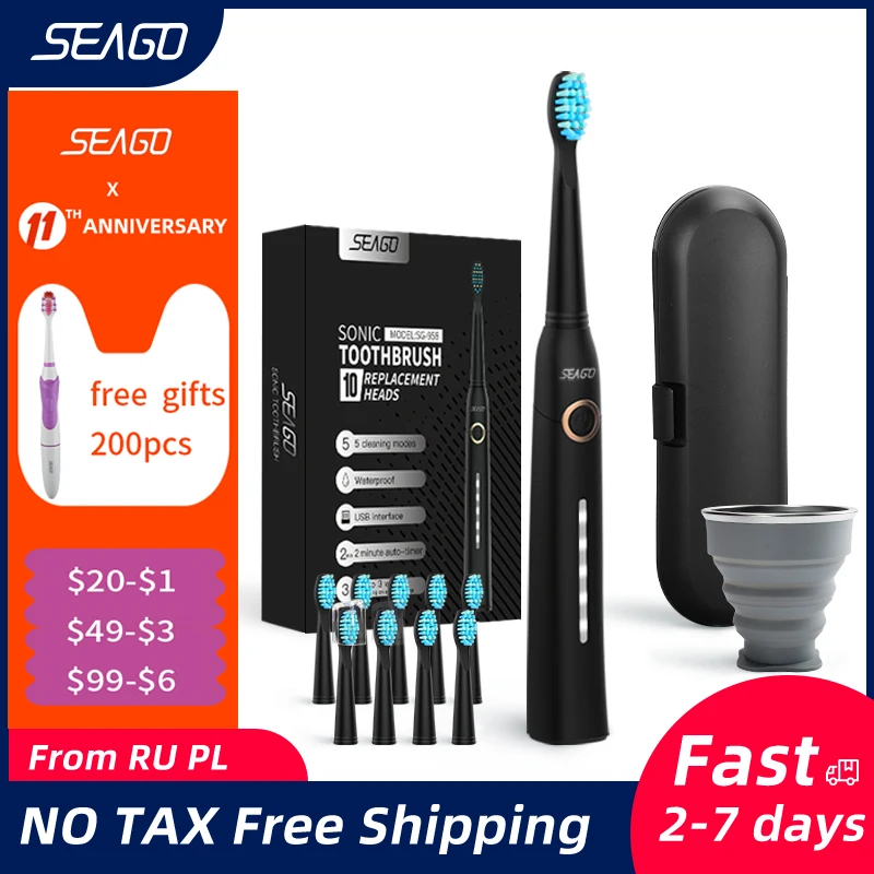 Seago Fast Rechargeable Sonic Toothbrush Electric Smart Automatic with Case Whitening Replacement Brush Head Adult Waterproof