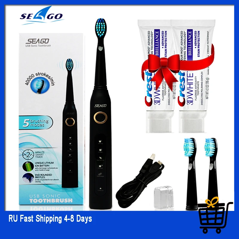 Seago Sg-507 Sonic Electric Toothbrushes Adult Timer Brush 5 Mode Usb Rechargeable Tooth Brush Replacement Heads Gift Toothpaste