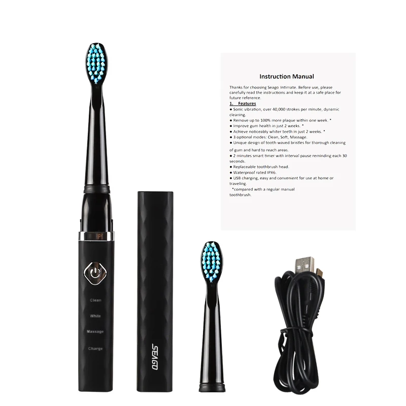 SEAGO SG-515 Travel Electric Toothbrush High Frequency Sonic Vibration Waterproof Teeth Brush Whitening Gum Massager with Box