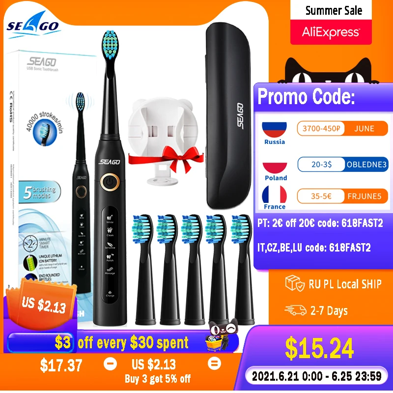 Seago SG507B Sonic Electric Toothbrush Adult Timer Brush USB Rechargeable Electronic Tooth Brush Heads Replacement Holder Gift