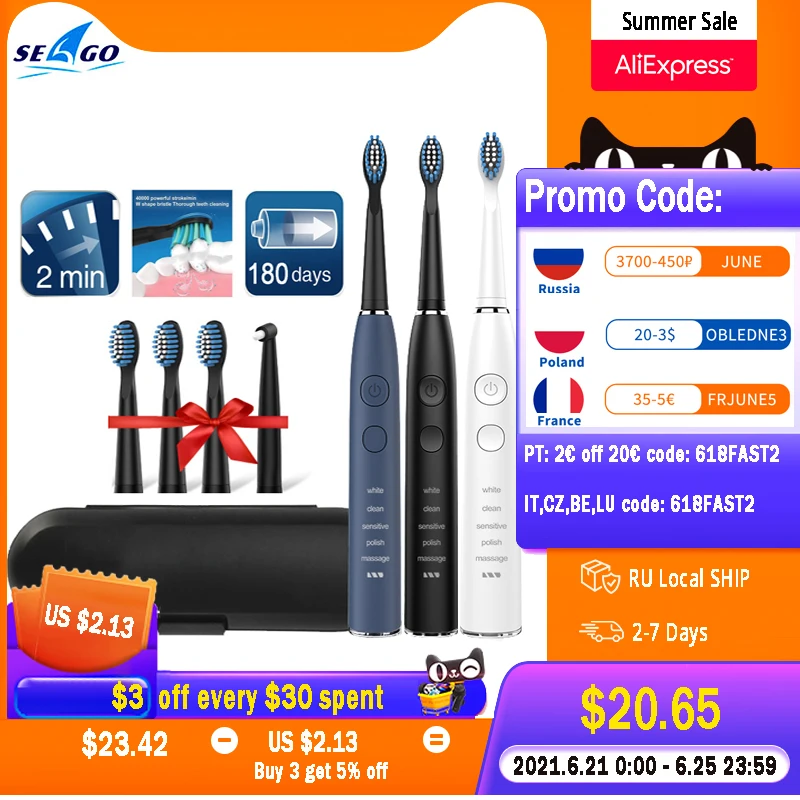 Seago Sonic Electric Toothbrush SG-575 Adult Timer Brush 5 Modes Usb Rechargeable Tooth Brushes Replacement Heads and Travel Box