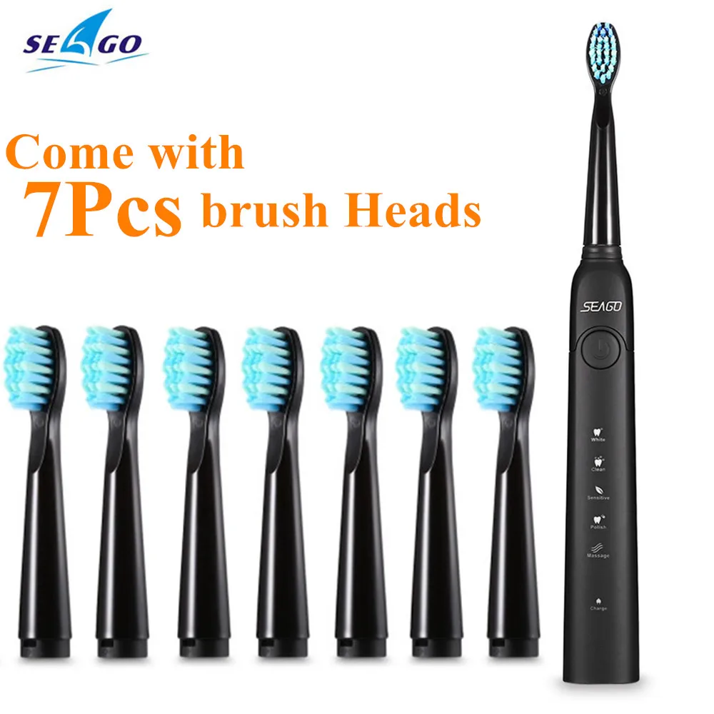 SEAGO Sonic Electric Toothbrush with Smartimer 5 Brushing Modes + 7 Brush Heads USB Rechargeable Oral Hygiene Travel Toothbrush