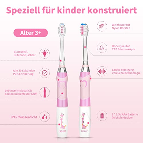 Seago Spazzolino Elettrico Bambini dai 3-12 Anni con Timer di Spazzolamento e Lampade a LED Colorate e 4 Setole Morbide Testine Idea Regalo per Ragazzi e Ragazze SGEK6/SG977 (Rosa)