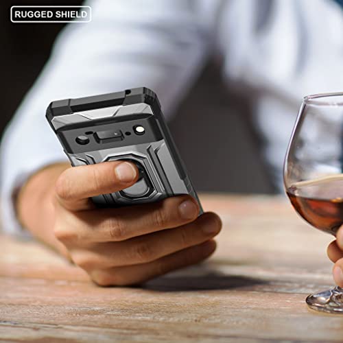 SEAHAI Cover per Google Pixel 6 PRO, [360° Anello Supporto Kickstand] [Militare Anti-Caduta Protezione] TPU Bumper in Silicone Opaco e Trasparente PC Ultra Sottile Custodia - Nero