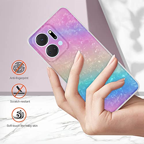 SEAHAI Cover per Honor X7a, Colore Sfumato Ultra-Sottile Case con Design Glitterato Seashell per Donne Ragazze Custodia Antiurto in Morbido Silicone TPU Colorato, Rosa arancio