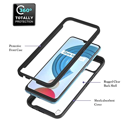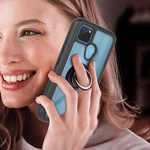 SEAHAI Cover per Realme C21Y / Realme C25Y, [con Anello Supporto] Custodia Trasparente Full Body Antiurto Rigida PC Soft TPU Sottile Silicone Protettiva Staccabile Cellulare Case - Nero