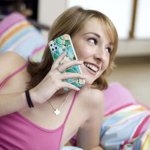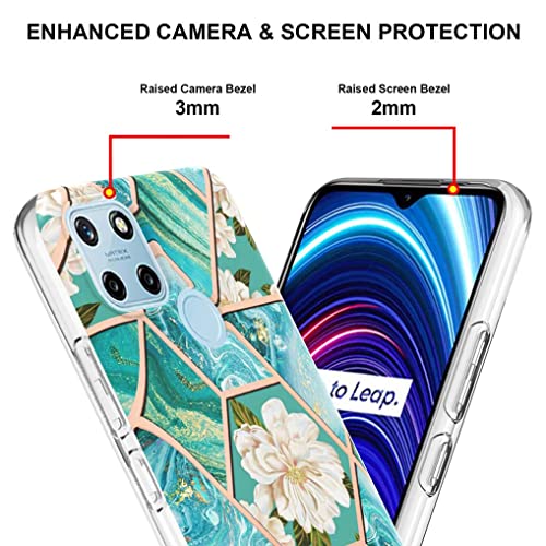SEAHAI Cover per Realme C21Y / Realme C25Y, Custodia Protettiva Ultra Sottile ed Elegante in Silicone TPU Flessibile, Glitter Marmo Cover Antiurto per Realme C21Y / Realme C25Y - Fiore Verde