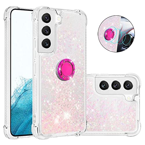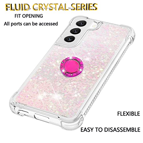 SEAHAI Cover per Samsung Galaxy S22, Custodia in Liquido Quicksand con Brillantini, Trasparente Silicone Morbido Ultra Sottile TPU Antiurto Case con 360° Anello Supporto, Rosa Chiaro