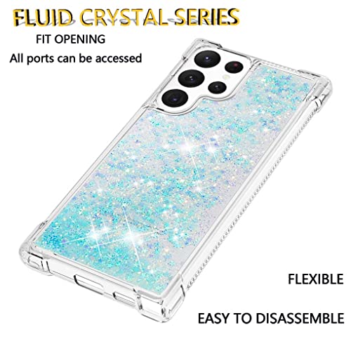 SEAHAI Cover per Samsung Galaxy S22 Ultra, Custodia in Liquido Quicksand con Brillantini, Trasparente Silicone Morbido Ultra Sottile TPU Antiurto Case per Samsung Galaxy S22 Ultra, Azzurro