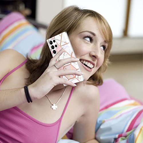 SEAHAI Cover per Samsung Galaxy S22 Ultra, Custodia Protettiva Ultra Sottile ed Elegante in Silicone TPU Flessibile, Glitter Marmo Cover Antiurto per Samsung Galaxy S22 Ultra - Rosa Bianco