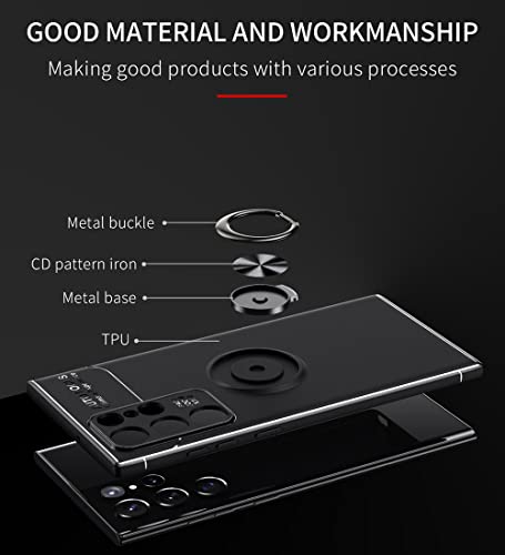 SEAHAI Cover per Samsung Galaxy S22 Ultra, Protettiva Custodia con 360° Anello Supporto, Ultra Sottile Silicone TPU Bumper Antiurto AntiGraffio Case per Samsung Galaxy S22 Ultra - Nero/Nero