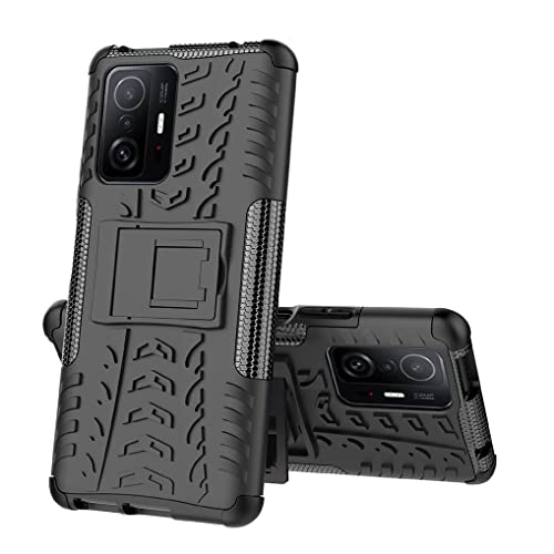 SEAHAI Cover per Xiaomi 11T PRO 5G/Xiaomi 11T 5G, Antiurto Protezione Silicone con Supporto Pieghevole Nascosto Kickstand Rugged Custodia Case per Xiaomi 11T PRO 5G/Xiaomi 11T 5G - Nero