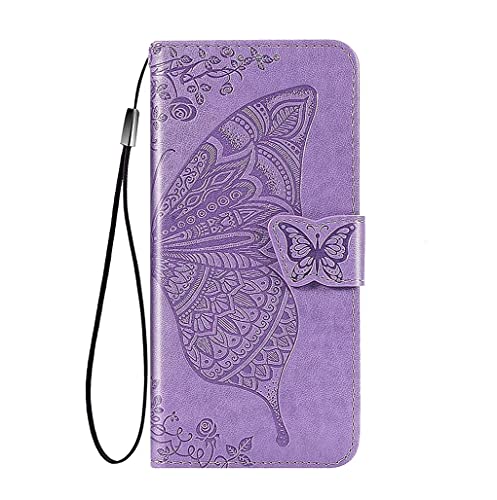 SEAHAI Pelle Cover per Nokia G21 / Nokia G11, Elegante Motivo a Farfalla Design Flip Custodia in PU Portafoglio, Antiurto Case Cover con Funzione Stand/Slot per Schede - Viola Chiaro