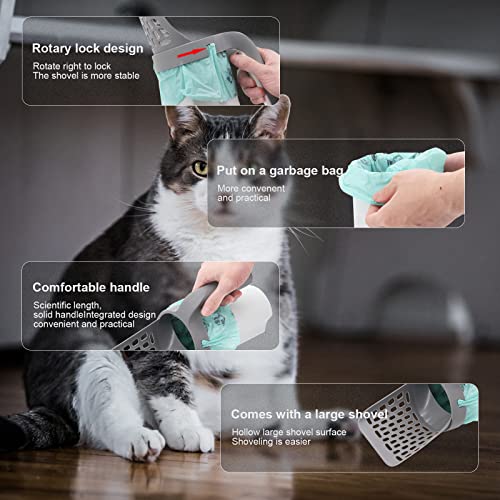 Seahelms Paletta per lettiera per Gatti con Sacchetti, in plastica per lettiera per Gatti con Supporto, Sistema di raschiatura per Gatti Staccabile con Sacchetto di Ricarica per 90 Punti