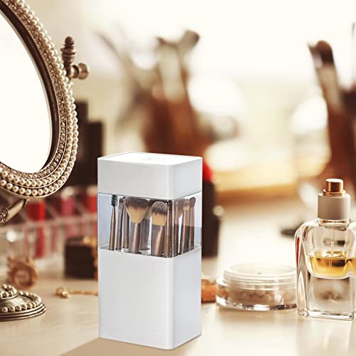 Seahelms Portaspazzole per trucco con coperchio, organizer per pennelli da trucco trasparente, contenitore per pennelli cosmetici antipolvere con soppalco in silicone (bianco)
