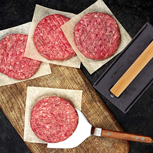 Materiale di alta qualità: la piastra per barbecue è realizzata in legno e ghisa, e la pala piatta e diagonale è realizzata in legno e acciaio inossidabile. L'acciaio inossidabile non arrugginisce facilmente ed è facile da pulire.