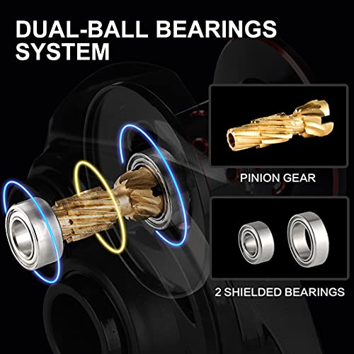 Caratteristiche eccezionali: 8 fagioli magnetici + sistema di frenatura magnetico a 10 livelli a 8 pin ottimizzano l'impatto magnetico sulla bobina di alluminio portato, offrono il massimo controllo della fusione. Un basso profilo palmabile di soli 4,3 cm di altezza sopra il sedile del mulinello e maniglia leggera in fibra di carbonio, un peso totale di soli 189,9 g.
