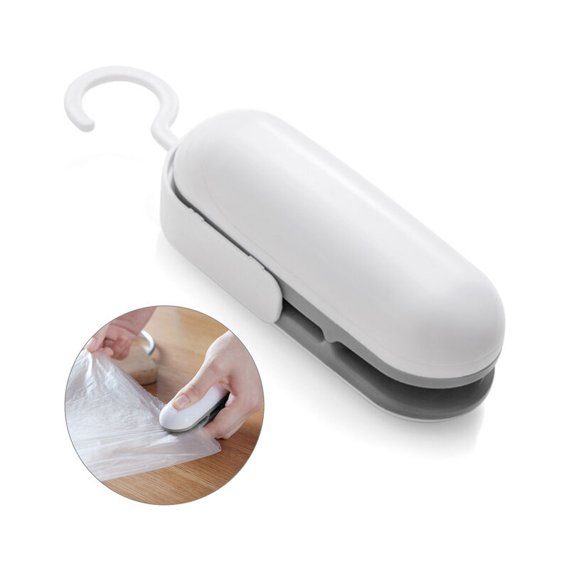 Mini sigillante per sacchetti 2 in 1 sigillante a caldo portatile per sacchetti di plastica per la conservazione degli alimenti Descrizione:Taglierina e sigillatrice per sacchetti 2 IN 1-con sigillante combinato per sacchetti e taglierina per sacchetti in uno, questo dispositivo ti aiuta a sigillare rapidamente o tagliare un sacchetto di plastica. Un regalo ideale per chi ama gli snack con la borsa per alimenti.Comodo per DAILYLIFE-realizzato con componenti elettronici e in plastica ABS di qualità, resistente alle alte temperature e durevole, di lunga durata.Facile da usare-dopo aver installato 2 batterie AA, premilo per 3-5s per preriscaldare, quindi metti la borsa al centro e tirala a velocità costante per sigillare, molto semplice da usare.Gancio rimovibile-la parte del gancio è rimovibile. Rimuovere il gancio durante la sigillatura di un sacchetto di plastica;