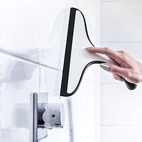 Sealis Tergivetro per Doccia di Plastica - Tergidoccia Spatola Lavavetri Bagno Tira Acqua per Doccia - Tergivetro Doccia Gomma Lavavetri a Ventosa 25,5 cm (nero)