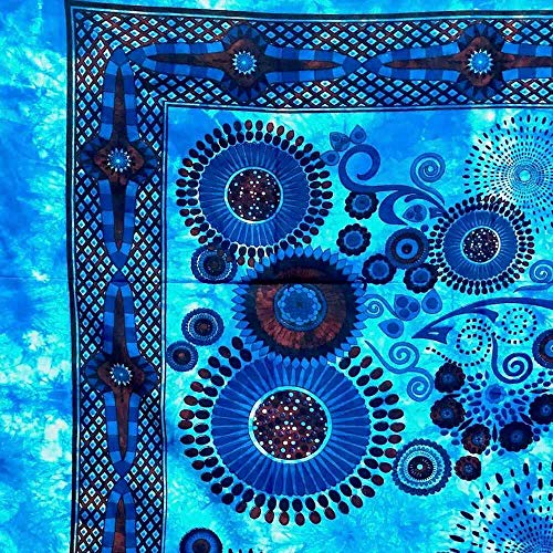 Seamar Telo Arredo Copritutto Grande Daisy 210x240 cm 100% Cotone Copri divano Gran foulard con Frange Batik (Azzurro)