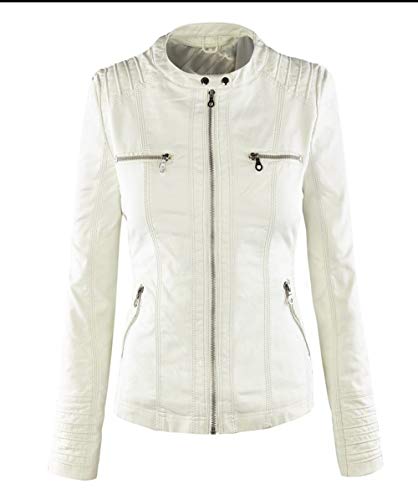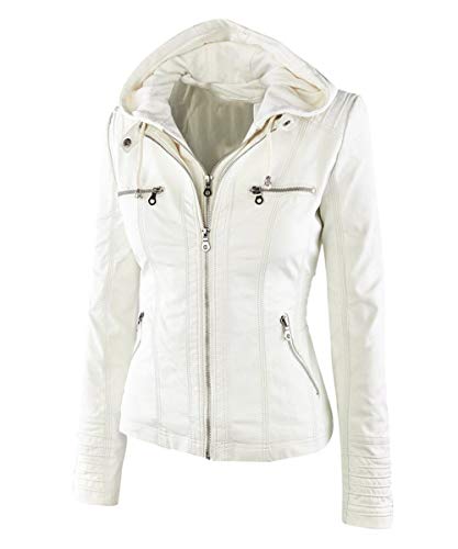 Seamido - Giubbotto da donna in similpelle (cappello staccabile) bianco XS