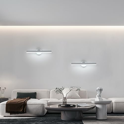 Seamoon Applique da Parete Interno, Applique LED Lunga Bianca,Lampada da Parete 6500K Bianco Freddo per Camera da Letto Soggiorno Sala da Pranzo Scala Corridoio 426LM, 8W, 38CM