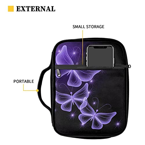 SEANATIVE Bling viola farfalla bibbia copertura con manico Bibbia libro borsa per il trasporto leggero poliestere Bibbia Tote borsa per le donne