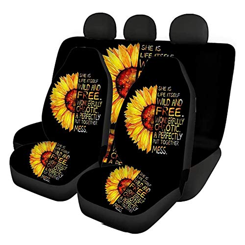 Seanative - Set di 3 coprisedili per auto, stile vintage, motivo floreale, girasoli e neri, anteriori e posteriori, universali per la maggior parte dei veicoli, SUV,