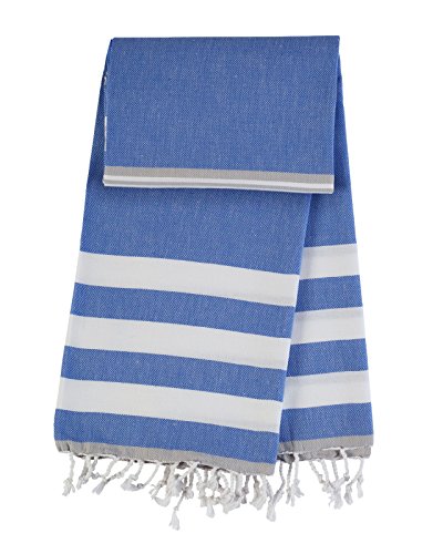 Seaport, asciugamano 100% cotone, conforme allo standard Oeko-Tex 100, prelavato, super morbido, pronto da usare, asciugamano da spiaggia, da bagno, per bagno turco, telo hammam, per viso, per bambini, peshtemal, fouta, 100% cotone, Royal Blue/Light Grey, X-Large