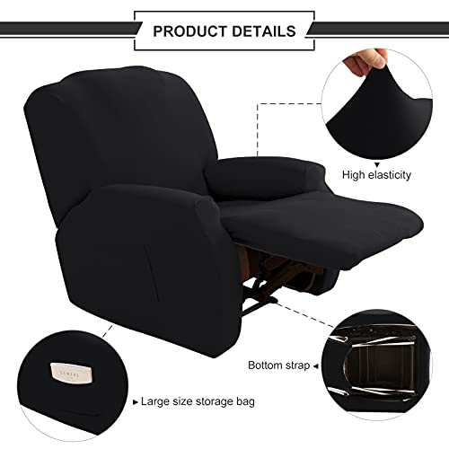 SearchI Copripoltrona Relax Reclinabile con Tasche,Moderne Fodere Poltrona Elasticizato Universale Copripoltrona 1 Posto Coperture della Poltrona Rimovibile Lavabile Antiscivolo per Soggiorno,Nero
