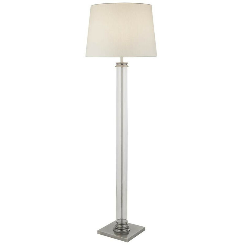 Searchlight Pedestal Lampada da terra Colonna in vetro e base argento satinato, paralume crema | Finitura: Argento satinato, Trasparente, Crema | Materiale: acciaio dolce, vetro, tessuto, plastica | Grado di protezione IP: IP20 | Altezza: 156 cm | Larghezza: 48 cm | Tipo di lampada: E27 | N. di lampade: 1 | Lampadina inclusa: no | Peso: 7.875 kg | Potenza (max): 60 W | Commutato: interruttore a pedale on-off in linea bianco