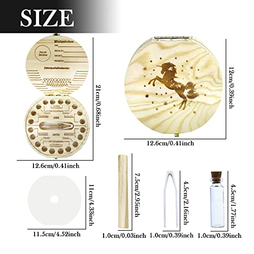 Scatola per denti da latte: dimensioni: 12,5 x 12 x 2,9 cm. Una scatola rotonda per denti da latte che mantiene la crescita di un bambino.