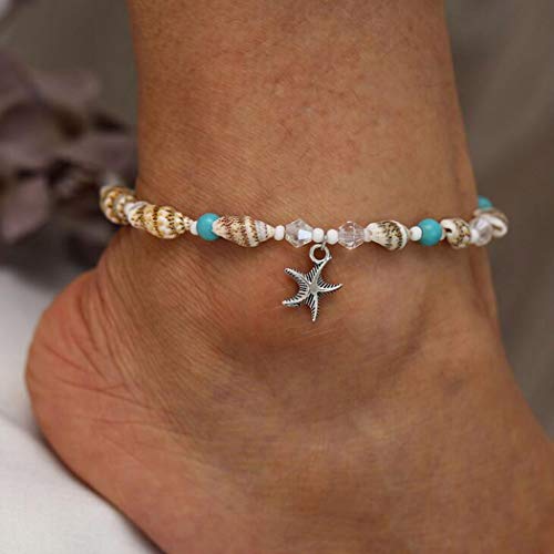 Yean Seashell Cavigliera Starfish Turchese Bracciale alla caviglia Bracciale in argento a forma di piede per donne e ragazze